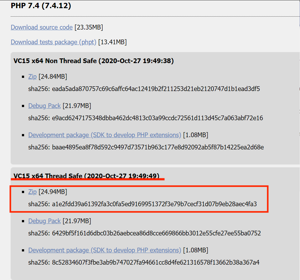 今回はスレッドセーフのZipをダウンロードします。