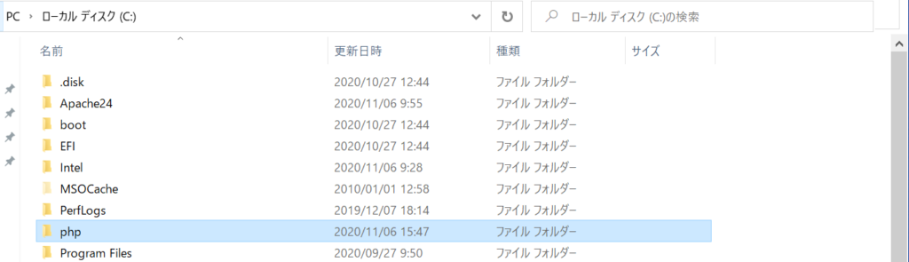 フォルダ名が長いので「PHP」へリネーム